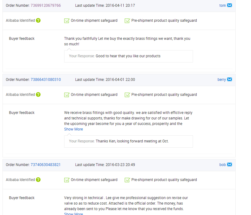 As the most reliable brass fitting supplier in China, Klikkon has a good reputation since founded. We receive many feedback from our customers every day, here are some of our comments. More comments, please visit here.
